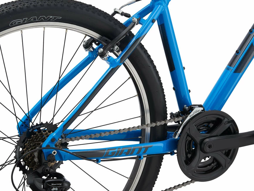 With a rugged personality and a smooth riding style, ATX features the familiar flat handlebar look of a traditional mountain bike. It has a lightweight yet durable ALUXX aluminium frame and a suspension fork with 75mm of smooth travel to soak up bumps. The wheel diameter varies based on bike size, with 26-inch wheels on smaller frames and 27.5 on larger ones. This tailors the bike’s handling to a rider’s height and integrated mounts make it easy to add racks or fenders to suit your riding adventures.
