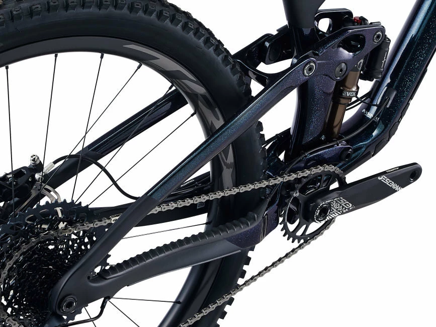 Maestro rear suspension features a trunnion mount shock with a longer stroke and smoother feel. With 135mm of full rear-wheel travel (and 150mm up front), it features an Advanced Forged Composite upper rocker arm for increased stiffness and strength plus lower overall frame weight.