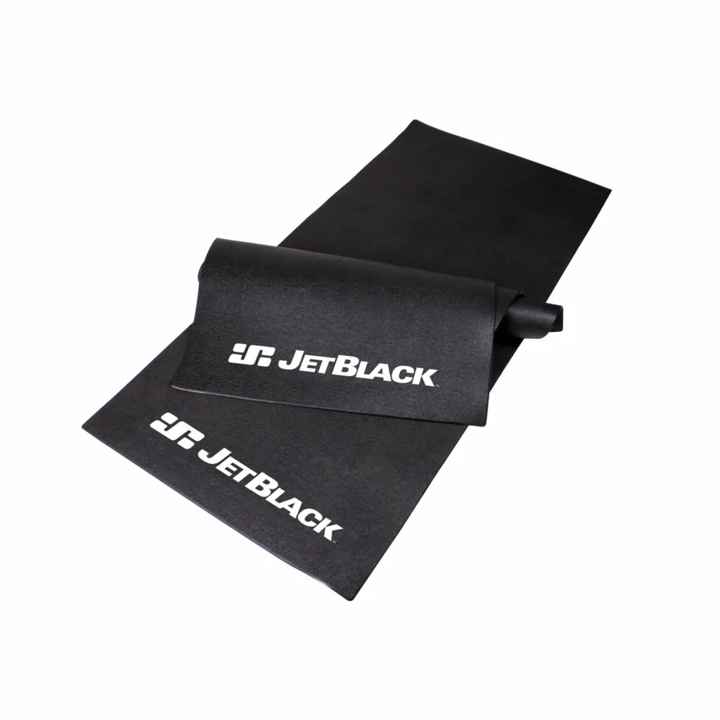 The JetBlack Trainer Mat is made from heavy-duty rubber, is odor free, will protect your carpets or floors during workouts and absorbs vibrations to reduce noise.